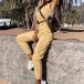 Fashion Solid Color Sleeveless Round Neck Crop Top + Pants Two-piece Set