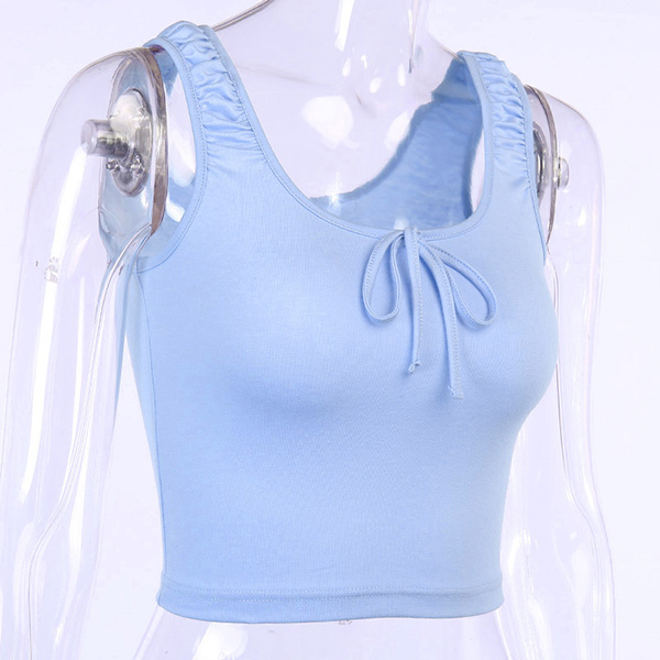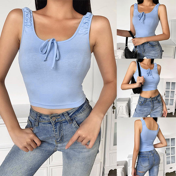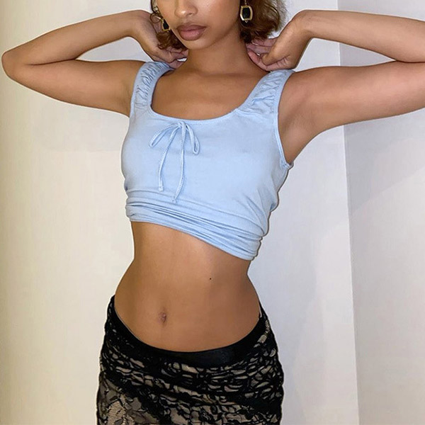 Wanna flaunt off your slender waist? Then this crop top can be a good helper. Solid color style,the wrinkled details and lace-up bow-knot design make this piece look more attractive. You can match with your high waist bottoms to achieve for a sexy and flirty look. Perfect fit for th summer days.