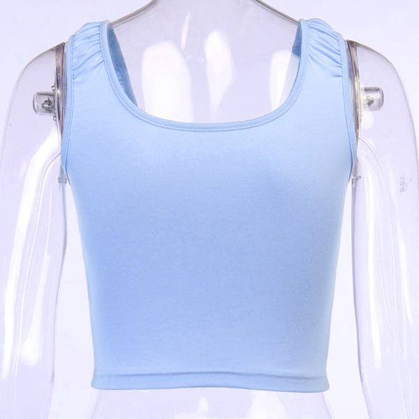 Fashion Solid Color Sleeveless Round Neck Crop Top