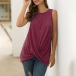 Fashion Solid Color Sleeveless Round Neck Crossover Hem Top