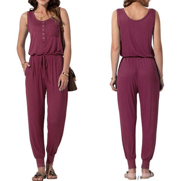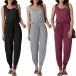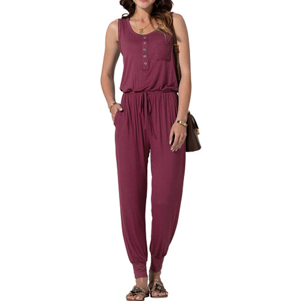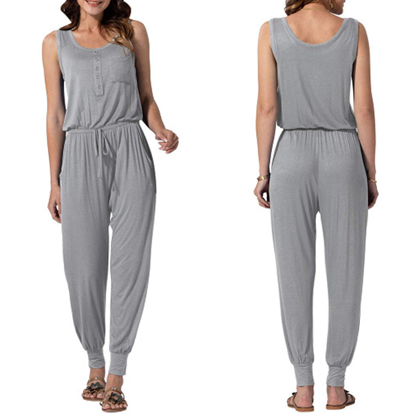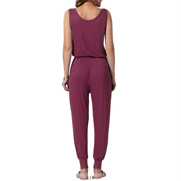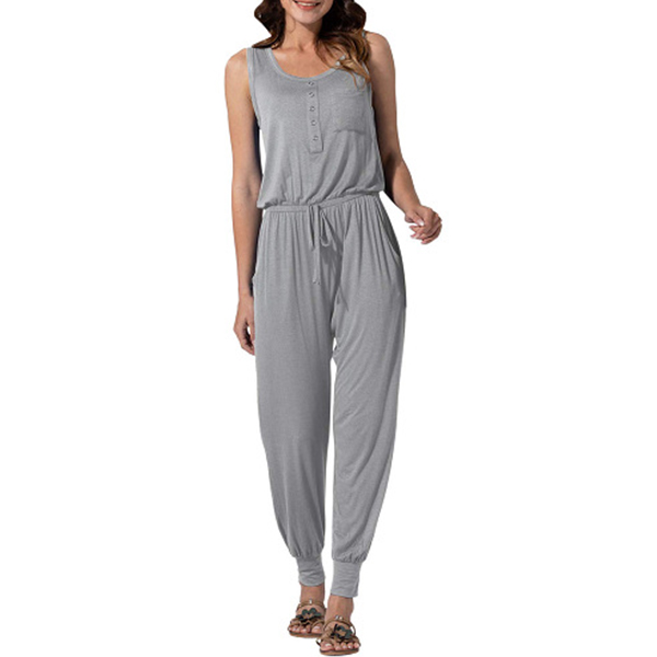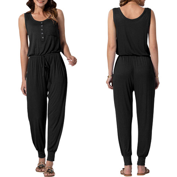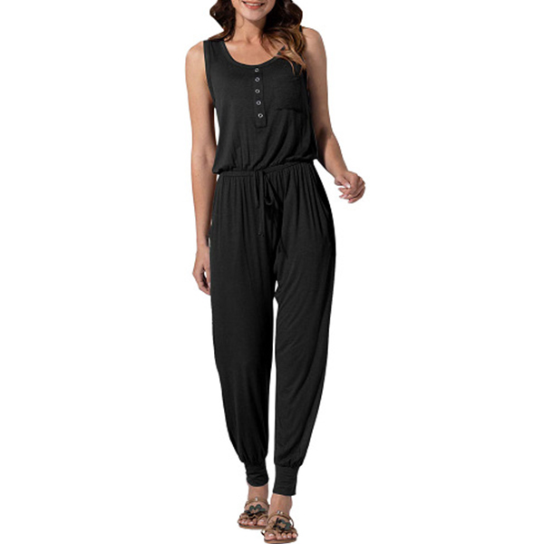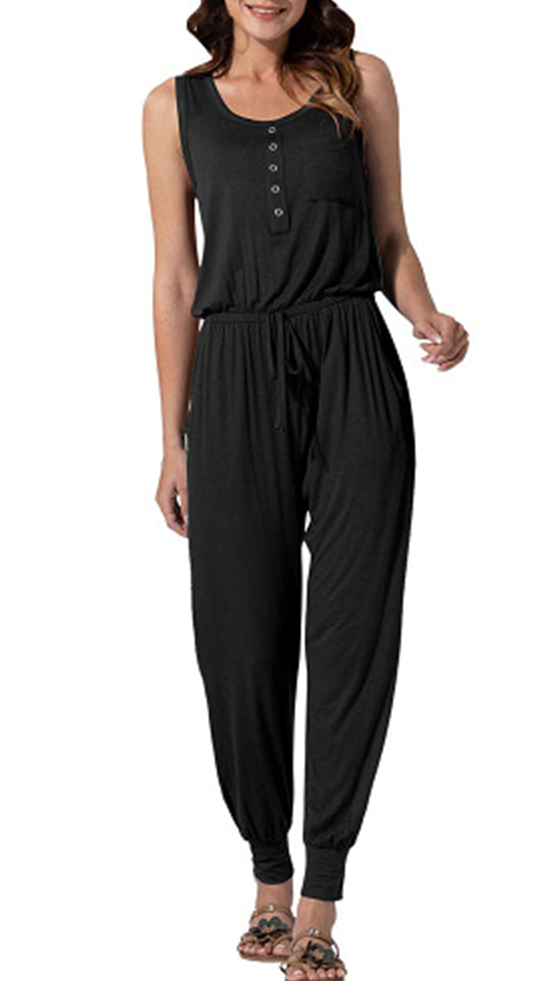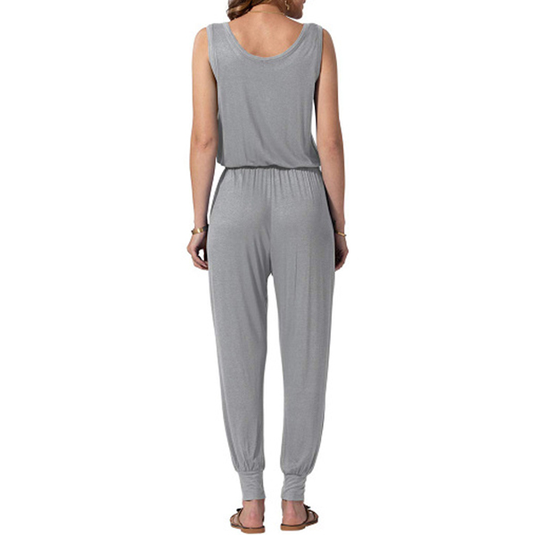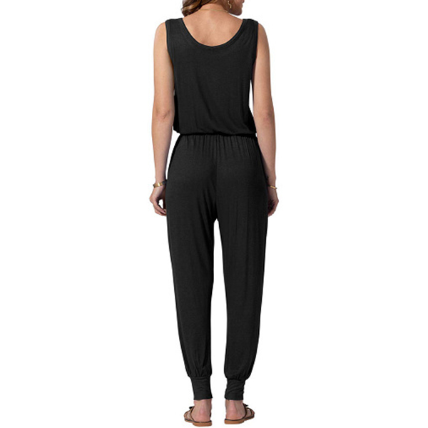 Combinaison à Taille Élastique sans Manches à Col Rond et à la Mode