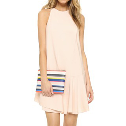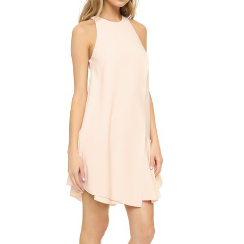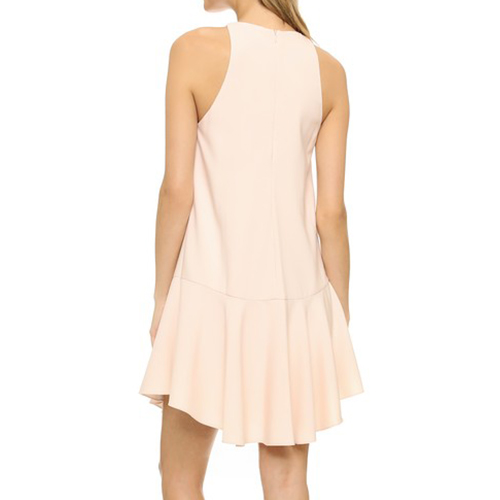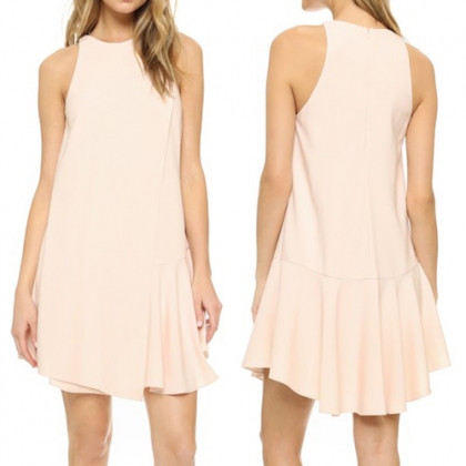 Boasting a sweet pink color,with sleeveless,round neck and flouncing hem,this dress is perfect