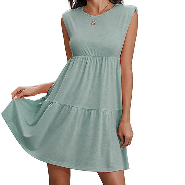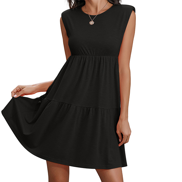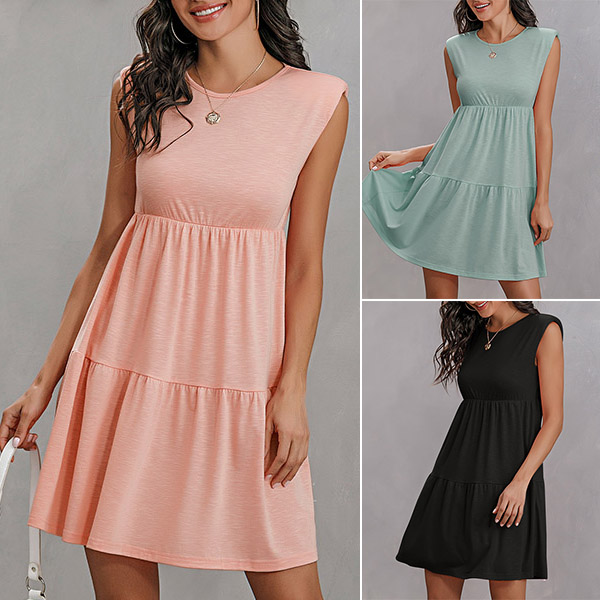 Fashion Solid Color Sleeveless Round Neck High Waist Dress