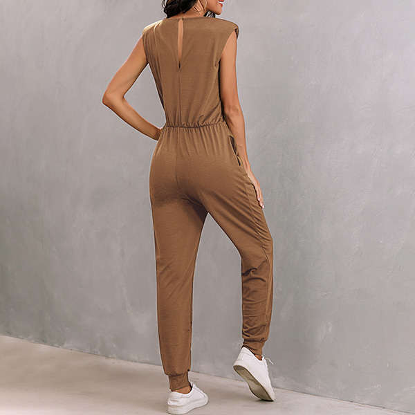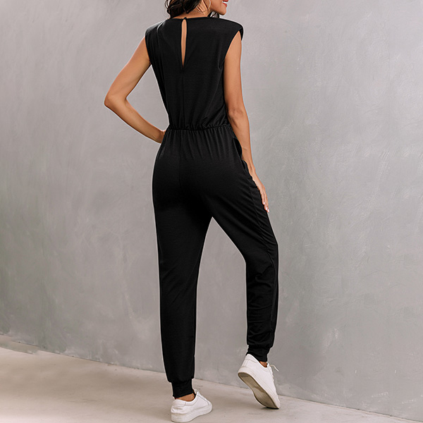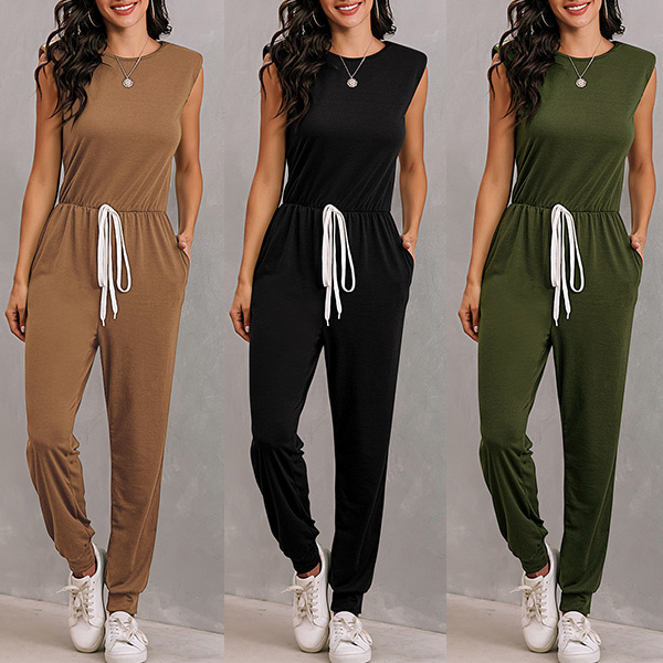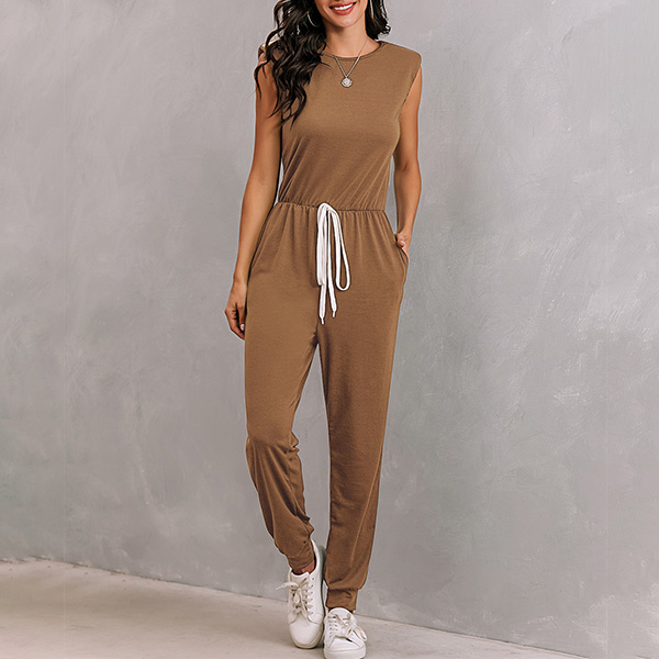 Fashion Solid Color Sleeveless Round Neck High Waist Jumpsuit