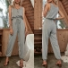 Fashion Solid Color Sleeveless Round Neck High Waist Jumpsuit