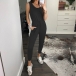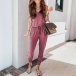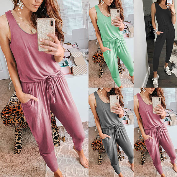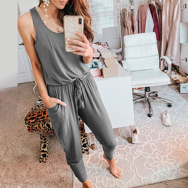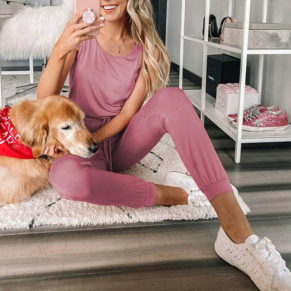 Fashion Solid Color Sleeveless Round Neck High Waist Jumpsuit