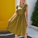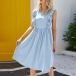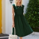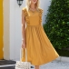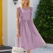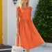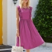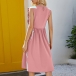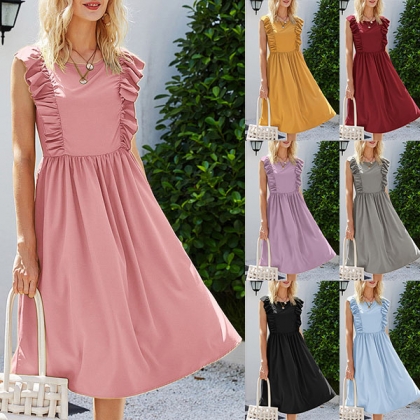 If style and comfort is what you're seeking for,then this dress is sure to strike your fancy. Solid color tone design makes it look simple yet generous,while the ruffle design will lend you a dash of sweet vibes. Finished with sleeveless,round neck and high waist design,this dress is perfect fit for your summer days.