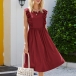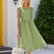 Fashion Solid Color Sleeveless Round Neck High Waist Ruffle Dress