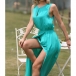 Fashion Solid Color Sleeveless Round Neck High Waist Slit Hem Dress