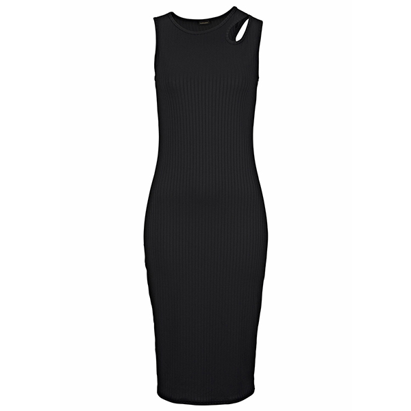 When you don't know what to wear for your beach days,then we might suggest you choosing this sleeveless dress. It boasts a flattering black tone and a fit silhouette,which can better highlight your slender figure,while the hollow out design at the shoulder part can add some extra charm. On these sunny days,matching with your favourite sandals and sweet straw hat would make you look more perfect!