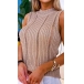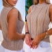Fashion Solid Color Sleeveless Round Neck Hollow Out Knit Tank Top