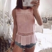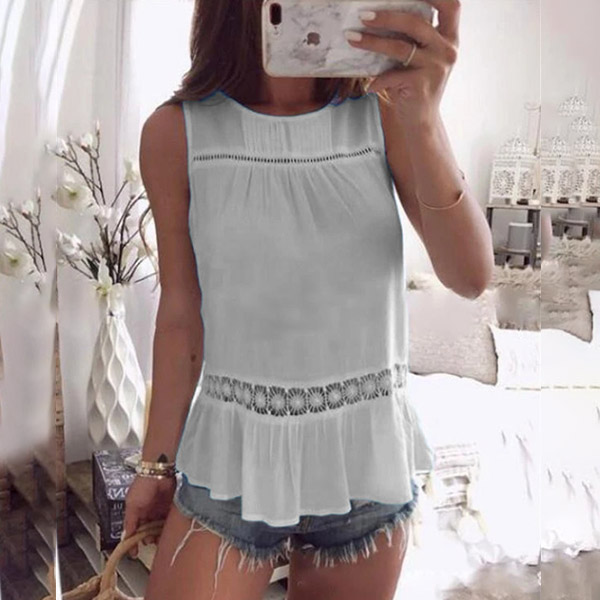 For these hot summer days,this sleeveless top is worth to have a place in your wardrobe. It features a solid color,with sleeveless,round neck and hollow out details,simple in design style,but it can keep you feeling comfy as well as offer you a stylish look.