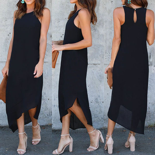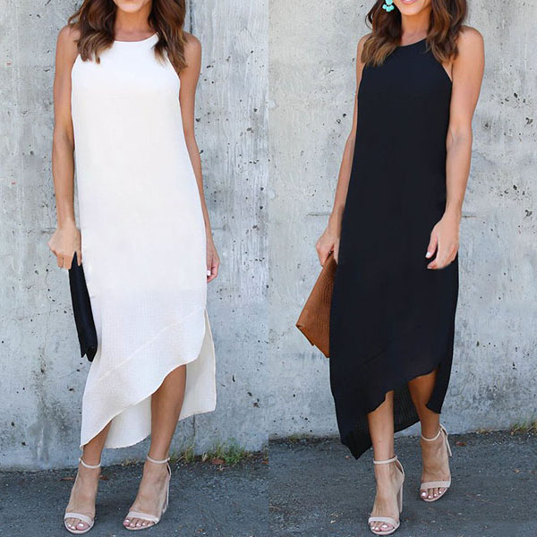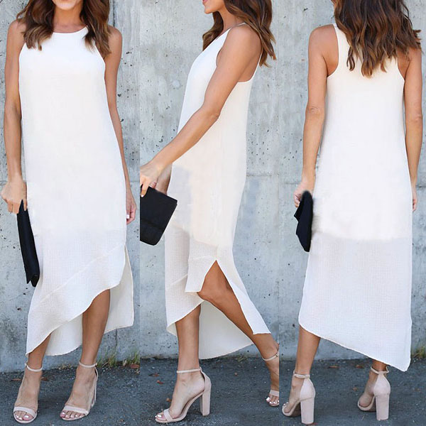 designed with sleeveless,round neck and an irregular hem,this dress is a perfect choice for your weekend out with