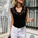 Fashion Solid Color Sleeveless Round Neck Lace Spliced Slim Fit Top