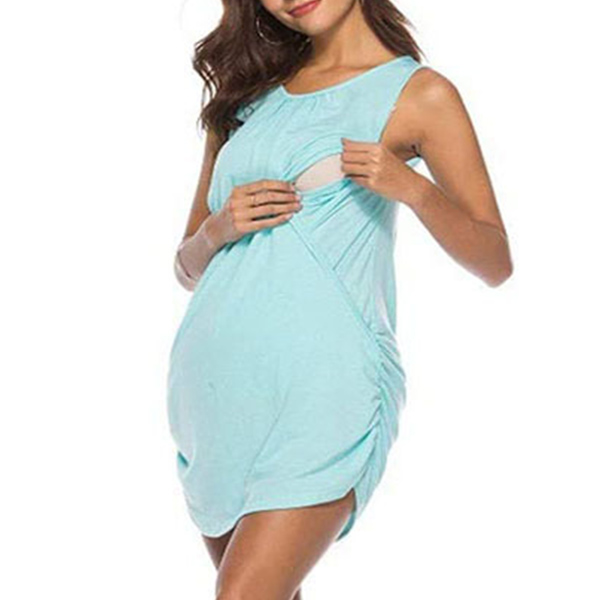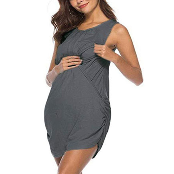 This versatile dress can give you a perfect transition for the pregnant time to breastfeeding time. Comes with a solid color,with sleeveless,round neck,an irregular hem and unique chest design,this dress can ensure you a comfortable day with its super soft and breathable fabric.
