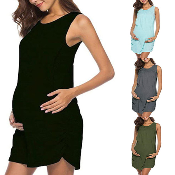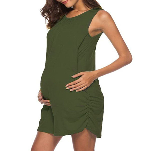 Fashion Solid Color Sleeveless Round Neck Maternity Dress
