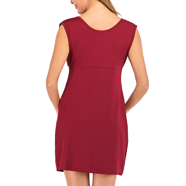 For these pregnant women,a simple,cozy yet stylish dress can easily strike their mind. So we suggest this piece. Solid color style,finished with sleeveless,round neck and crafted from soft,breathable fabric,this dress can ensure a comfortable and wonderful day.