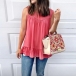 As for a simple,cozy and relaxed daily style,this top can be a wise choice. Solid color style,with sleeveless,round neck,ruffle hem and a loose silhouette,this piece knows how to give you a comfortable day while it maintains your style. Matching with a tight pants would be a good idea.