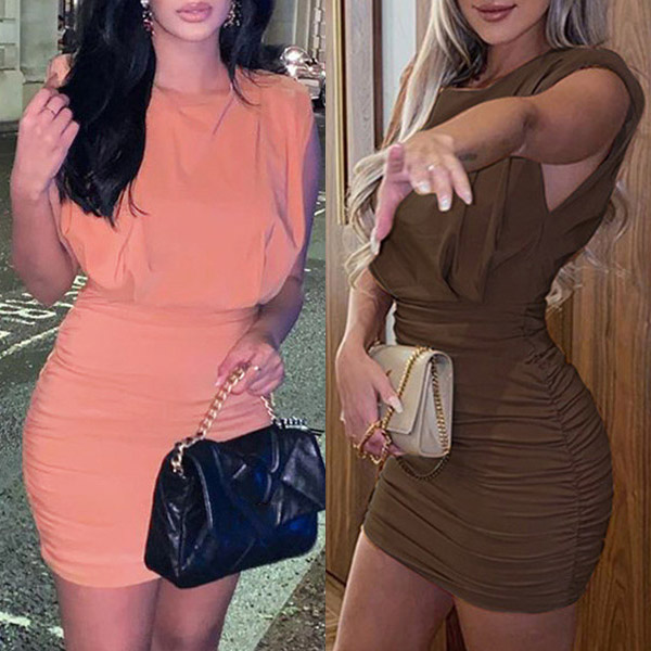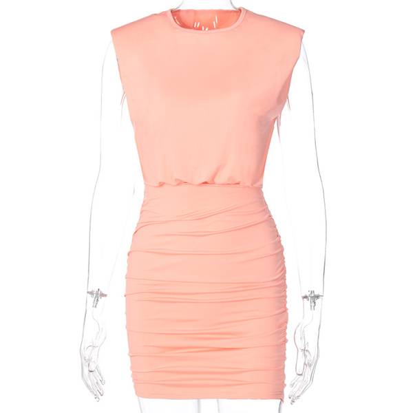 Fashion Solid Color Sleeveless Round Neck Slim Fit Dress