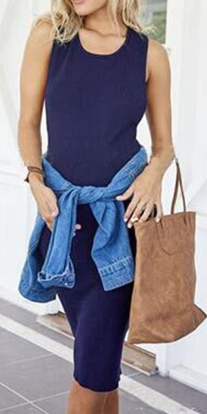 Solid color style,with sleeveless,round neck,a mid length and a sleek silhouette,delicate