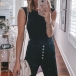 Fashion Solid Color Sleeveless Round Neck Slim Fit T-shirt