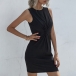 Fashion Solid Color Sleeveless Round Neck Slim Fit Twisted Dress