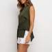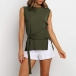 Fashion Solid Color Sleeveless Round Neck Slit Hem Lace-up Top