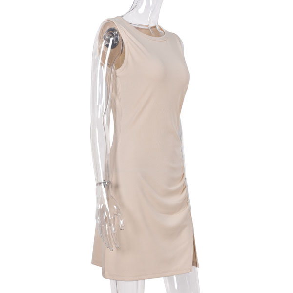 Fashion Solid Color Sleeveless Round Neck Slit Hem Slim Fit Dress