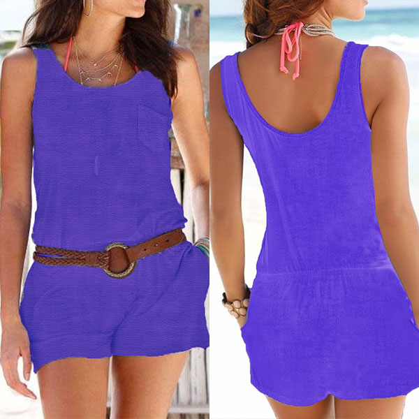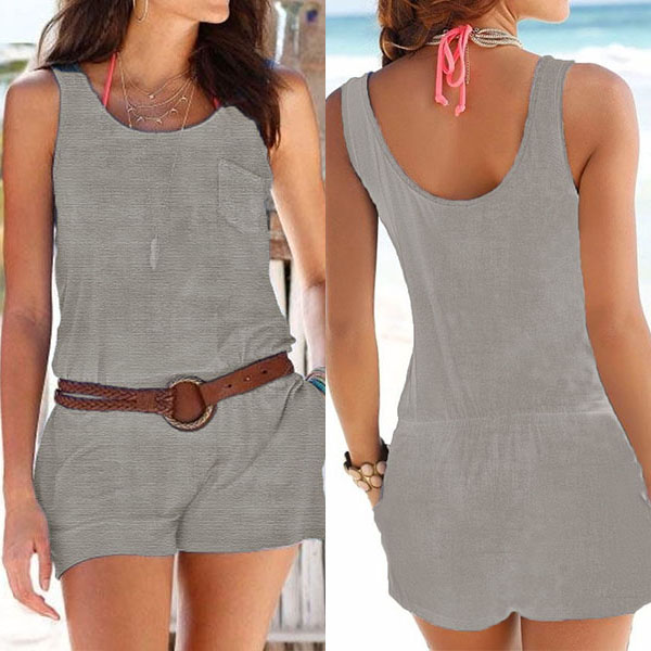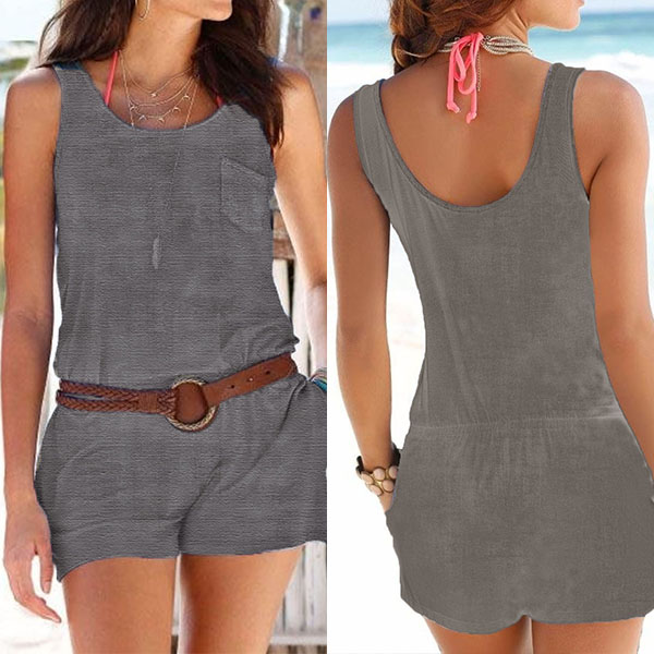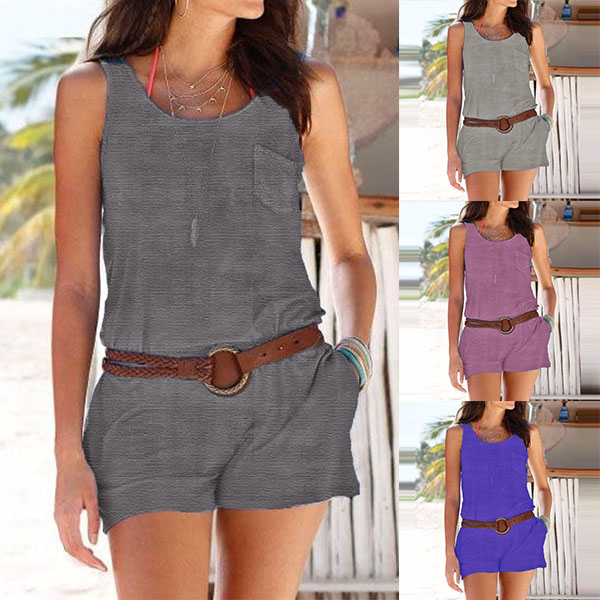 In this hot summer,this romper would be your perfect partner. Solid color style,designed with sleeveless,round neck and