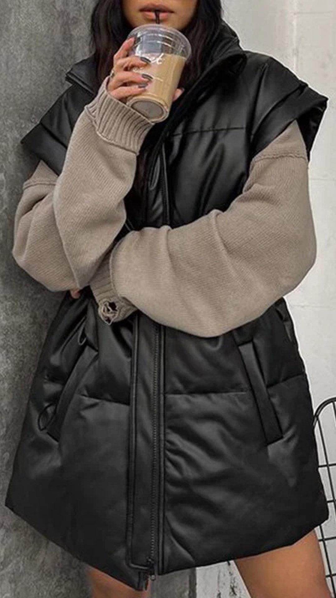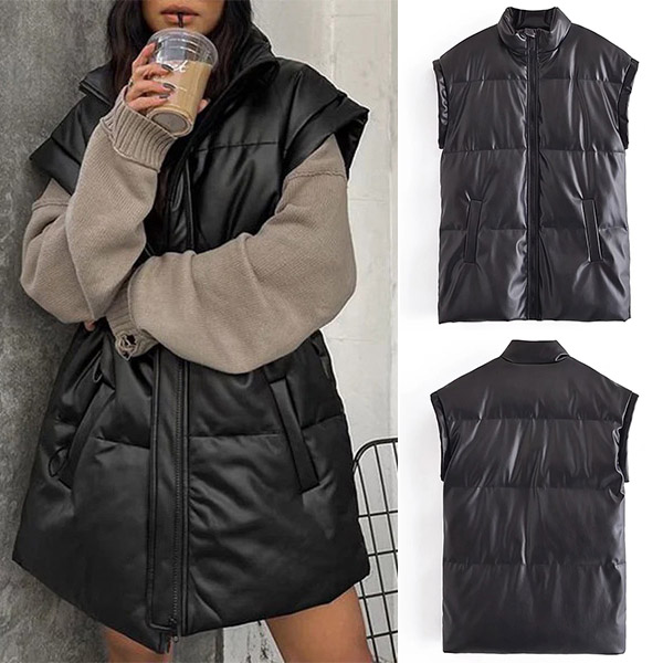 From your autumn days to chilly winter days,this vest can give you an easy transition. Solid color style,finished with sleeveless,stand collar and PU fabric,this piece makes it easy to wash. You can match it with different style tops such as t-shirts,shirts,sweaters and so on.