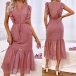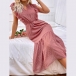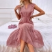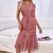 Fashion Solid Color Sleeveless Swiss Dot Ruffle Tiered Midi Dress