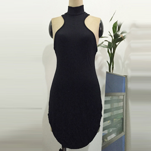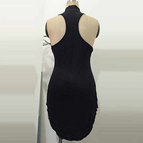 Fashion Solid Color Sleeveless Turtleneck Irregular Hem Slim Fit Dress