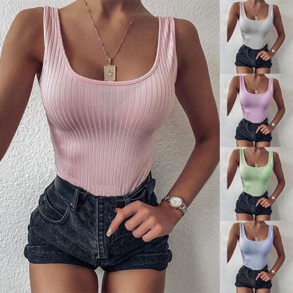 Fashion Solid Color Sleeveless U-neck Bodysuit