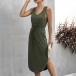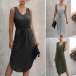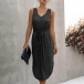Fashion Solid Color Sleeveless V-neck Arc Hem Dress