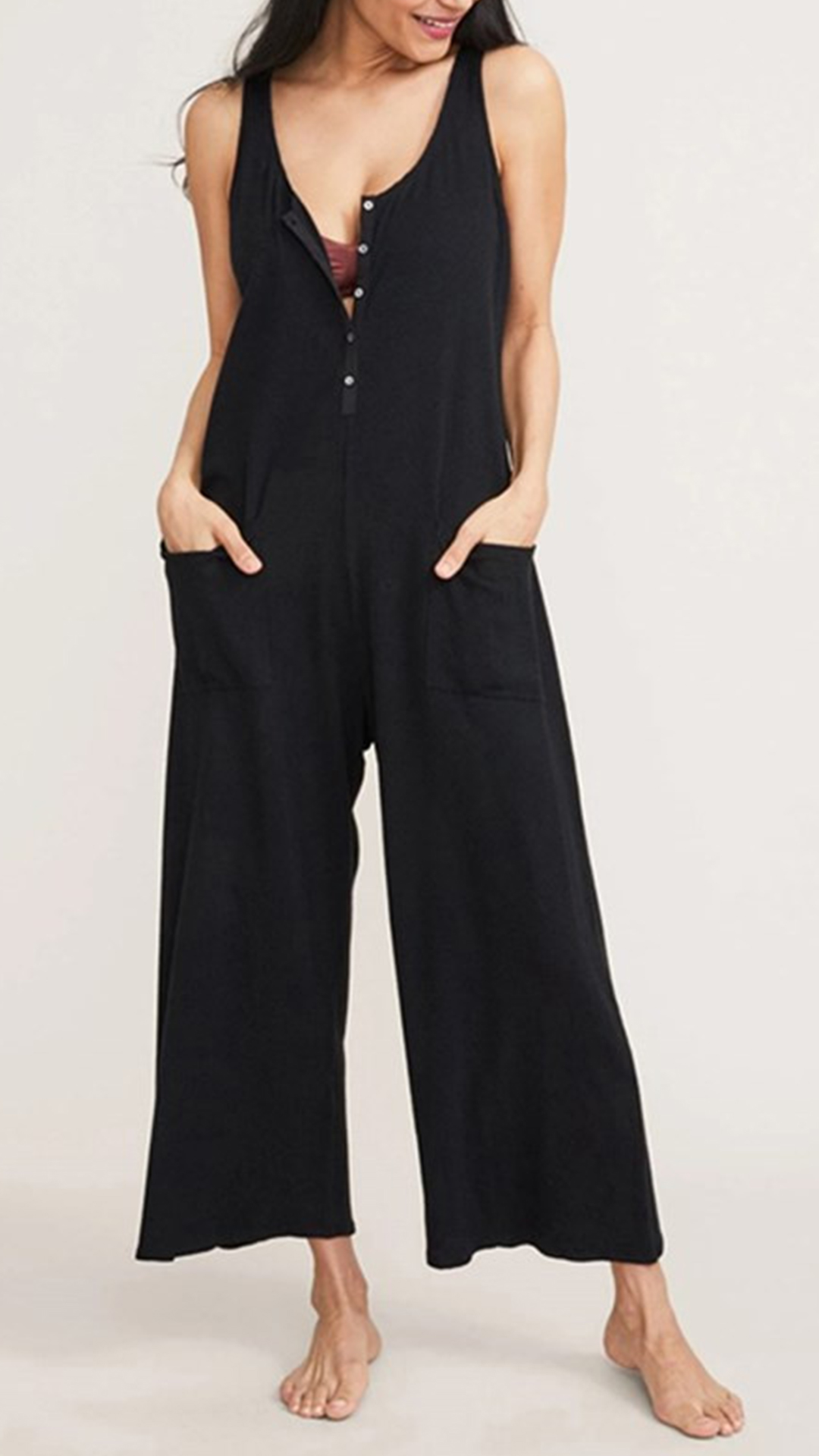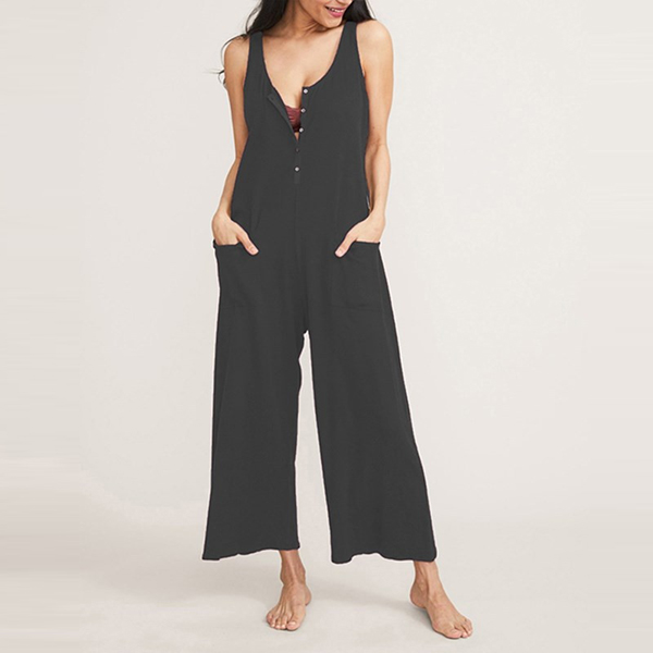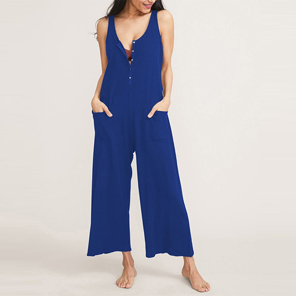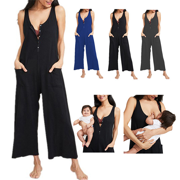 For the breastfeeding woman,this sleeveless jumpsuit is a good choice for them. Solid color style,finished with round neck and high waist design,this piece not only can showcase your slender figure,but also can give you a comfortable day. And the front-button design makes it more convenient for the breastfeeding woman. Like it? Then buy one!