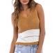 Crafted from soft and breathable knitted fabric,this top is sure to offer you an utmost comfort. Contrast color style,finished with sleeveless and v-neck design,this piece also can offer you many matching opportunities while it maintains your style.