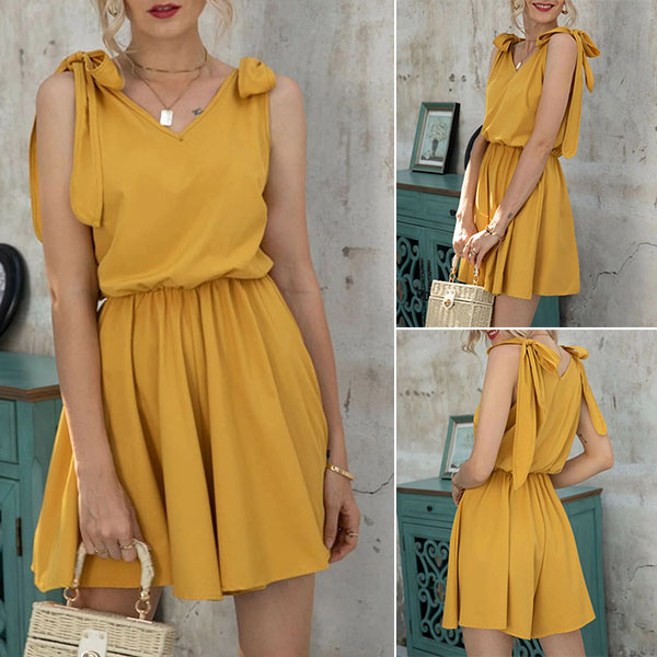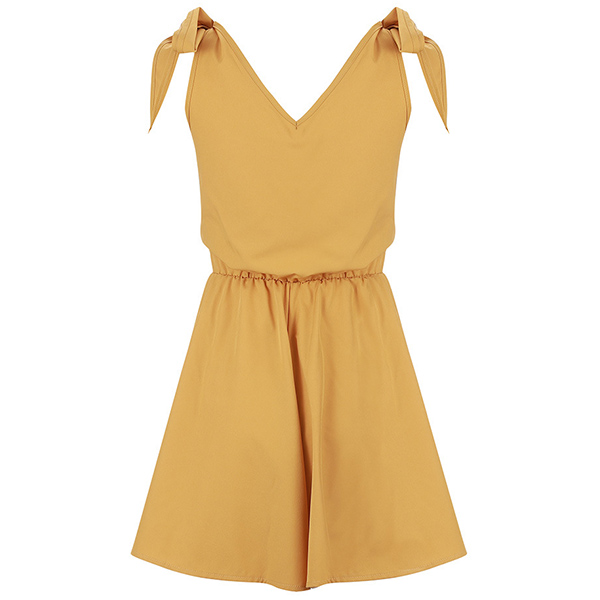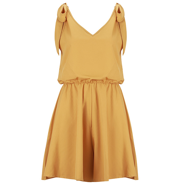 Let your summer style have an update with the help of this romper. It boasts a bright color,he v-neck and lace-up design at the shoulder part make this piece look so stylish and distinctive. For your night out or weekend trips,you can trust in this piece to gain more eyes. So why not invite it to your summer wardrobe?