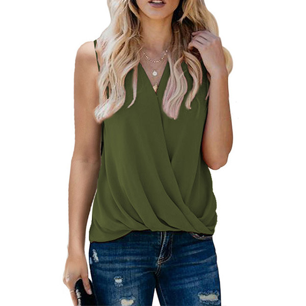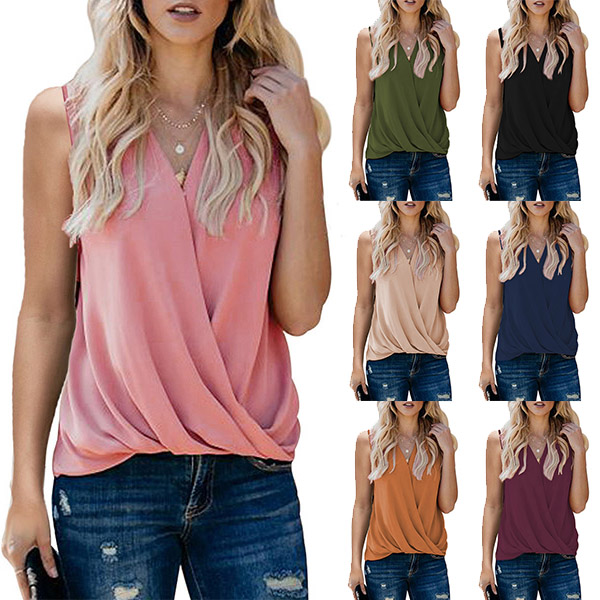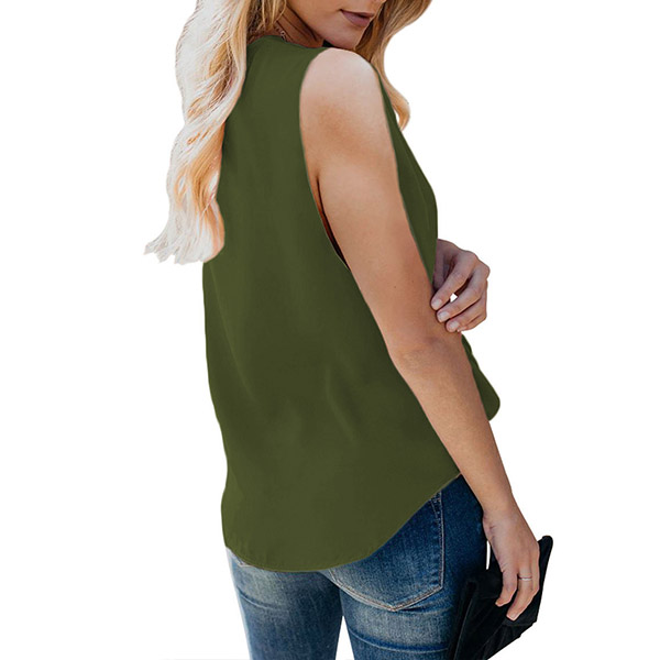 Fashion Solid Color Sleeveless V-neck Loose Top