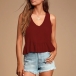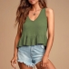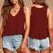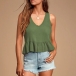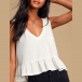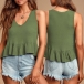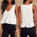 Fashion Solid Color Sleeveless V-neck Ruffle Hem Top