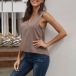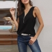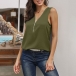 Fashion Solid Color Sleeveless Zipper V-neck Top