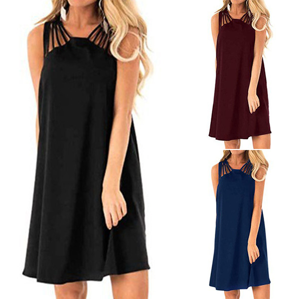 When the hot summer days hit,you can trust in this dress to give you a cool and comfortable day. Solid color tone design makes it look simple,stylish yet generous. And the hollow out details at the shoulder part can enhance its entire charm. For your daily out,this dress can be a good choice.