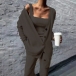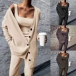 Fashion Solid Color Sling Top + Pants + Long Sleeve Cardigan Knit Three-piece Set