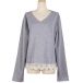This top is crafted from soft and breathable fabric,with long sleeve and v-neck design,which can ensure you a comfortable day. What's more,the slit hem at the back side and lace spliced details will enrich the design style as well as boost its entire charm. Attracted? Then buy one!