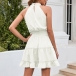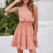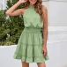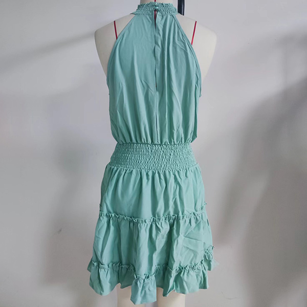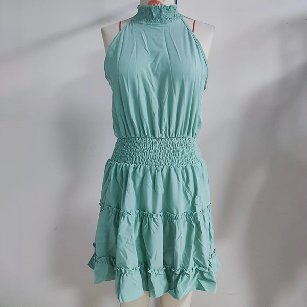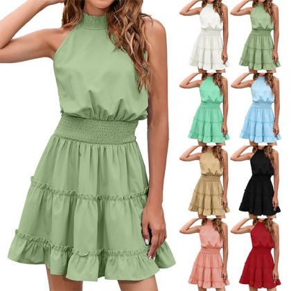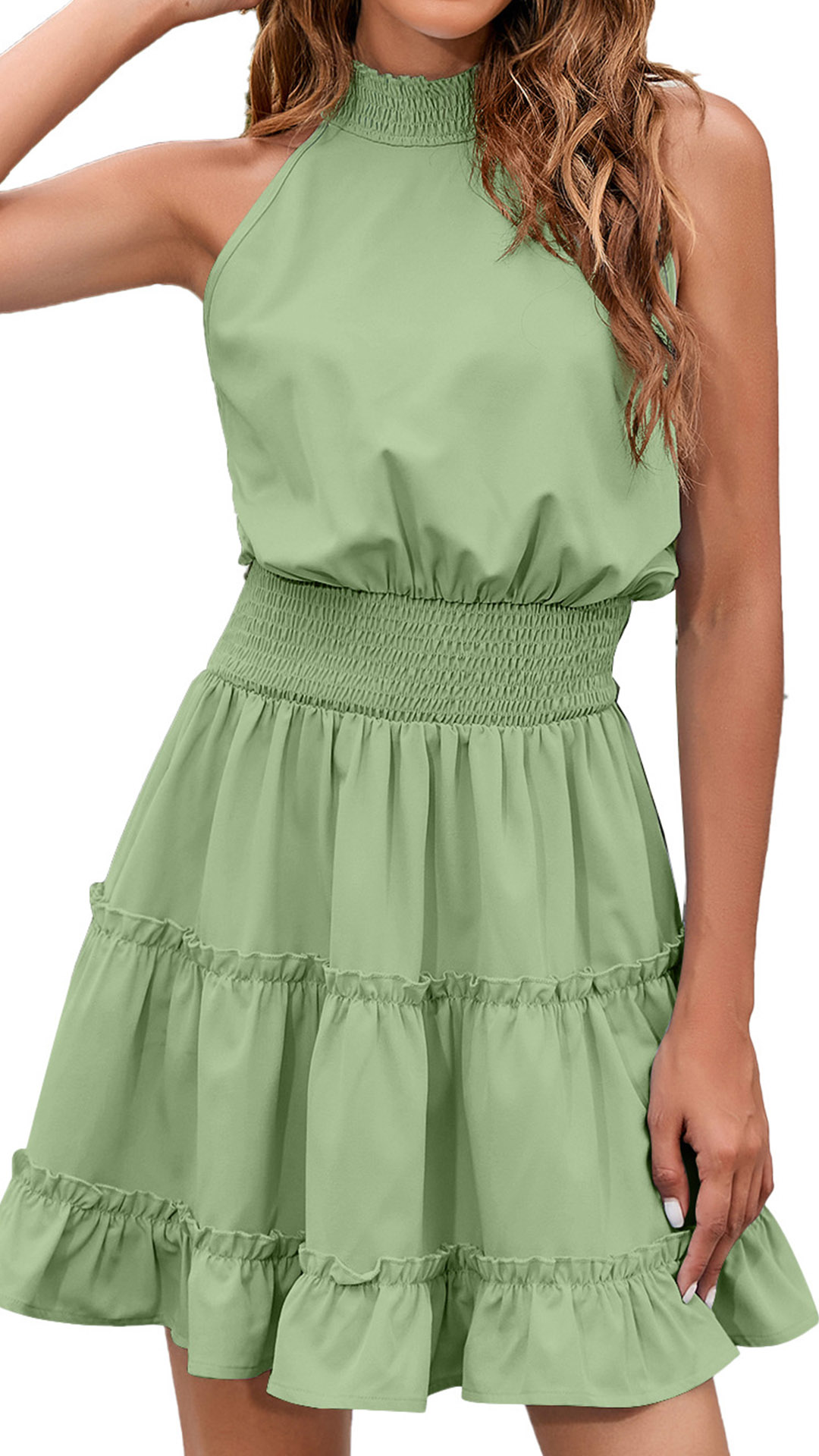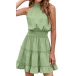 Fashion Solid Color Smocked Mock Neck Sleeveless Tiered Dress