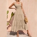 This sleeveless tiered dress features a smocked bodice, round neck design that is both comfortable and stylish.