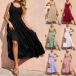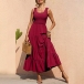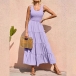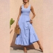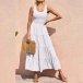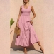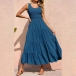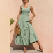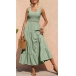 Fashion Solid Color Smocked Round Neck Sleeveless Tiered Dress