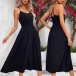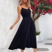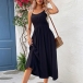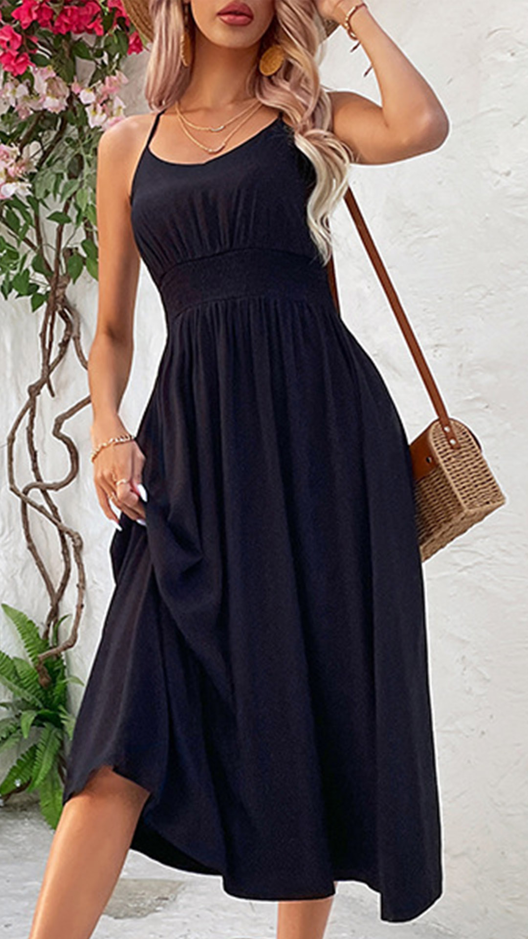 Fashion Solid Color Smocked Waist Cross-criss Backless Slip Dress