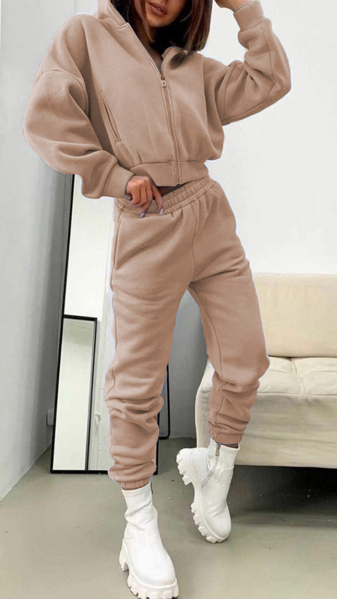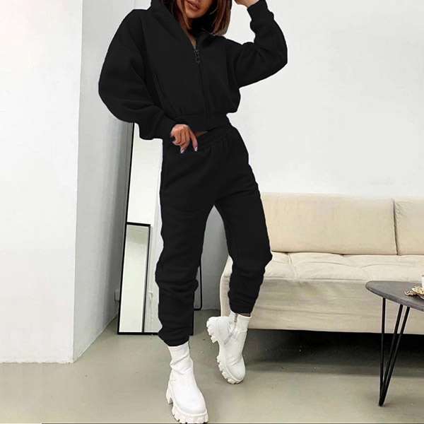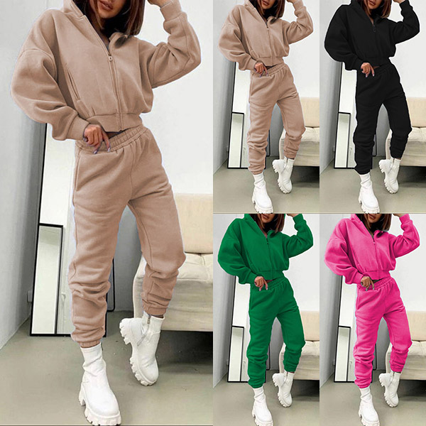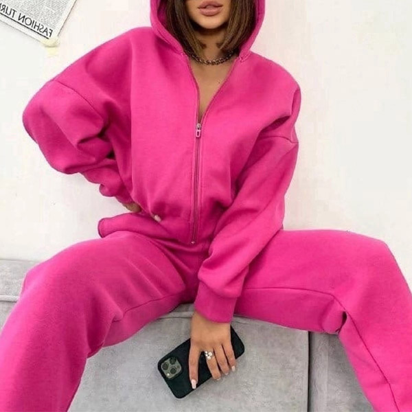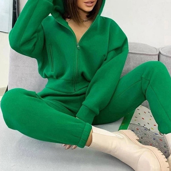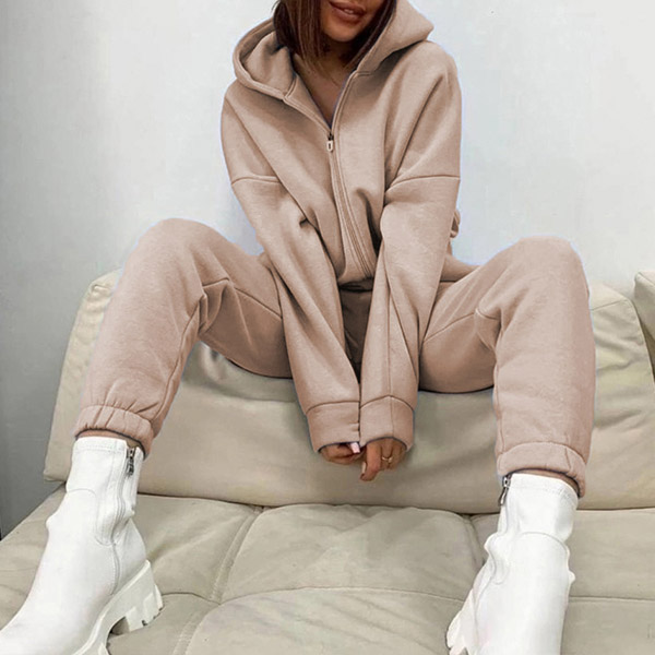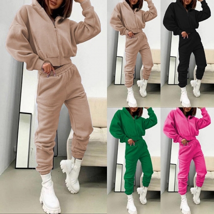 Fashion Solid Color Sporty Two-piece Set Consist of Hooded Jacket and Sweatpants