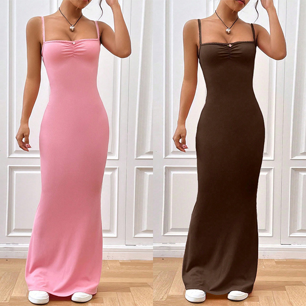 Fashion Solid Color Square Neck Cami Maxi Dress