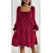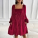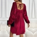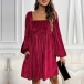 Fashion Solid Color Square Neck Lantern Long Sleeve Side Pockets Backless Velvet Dress